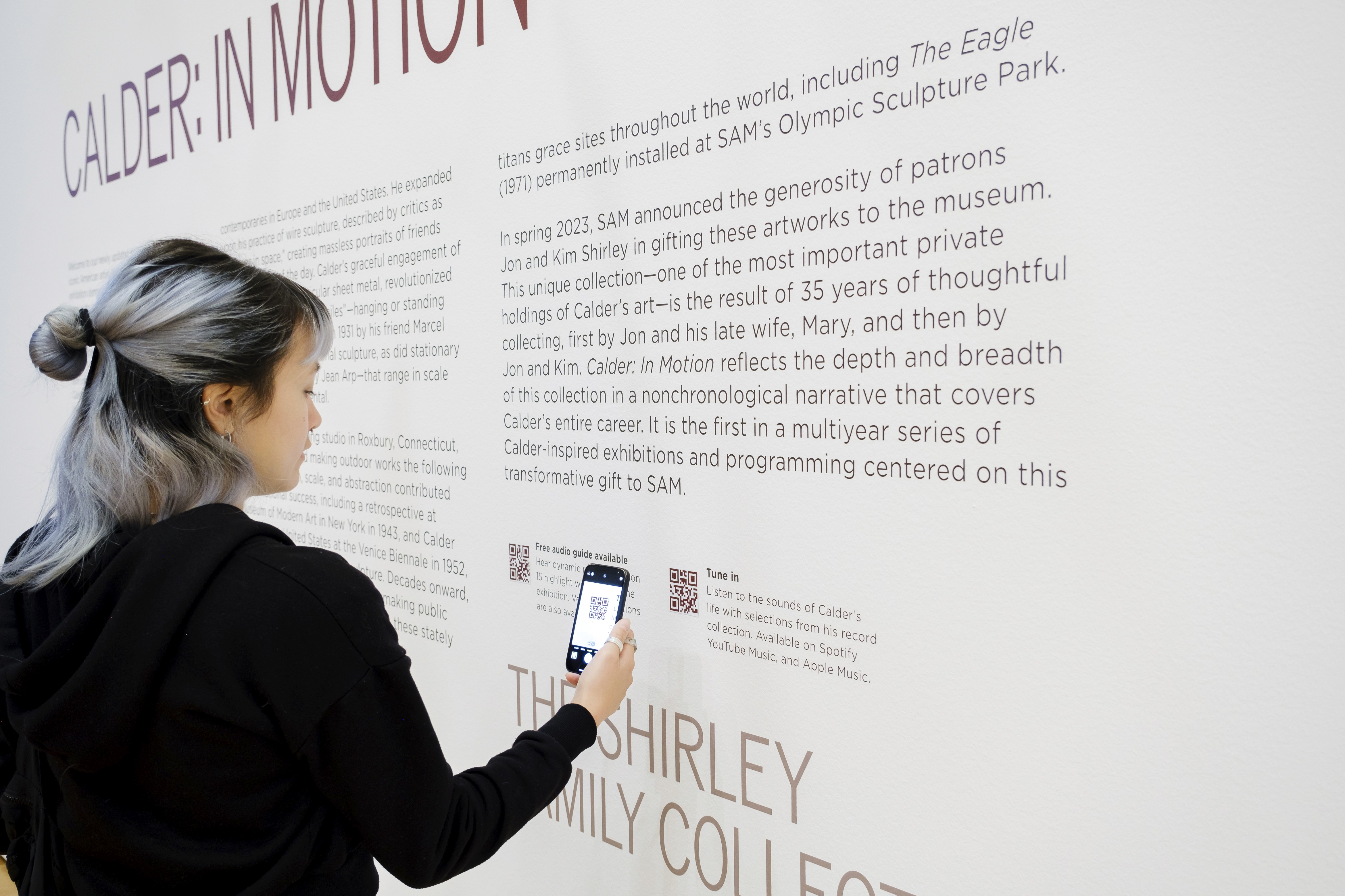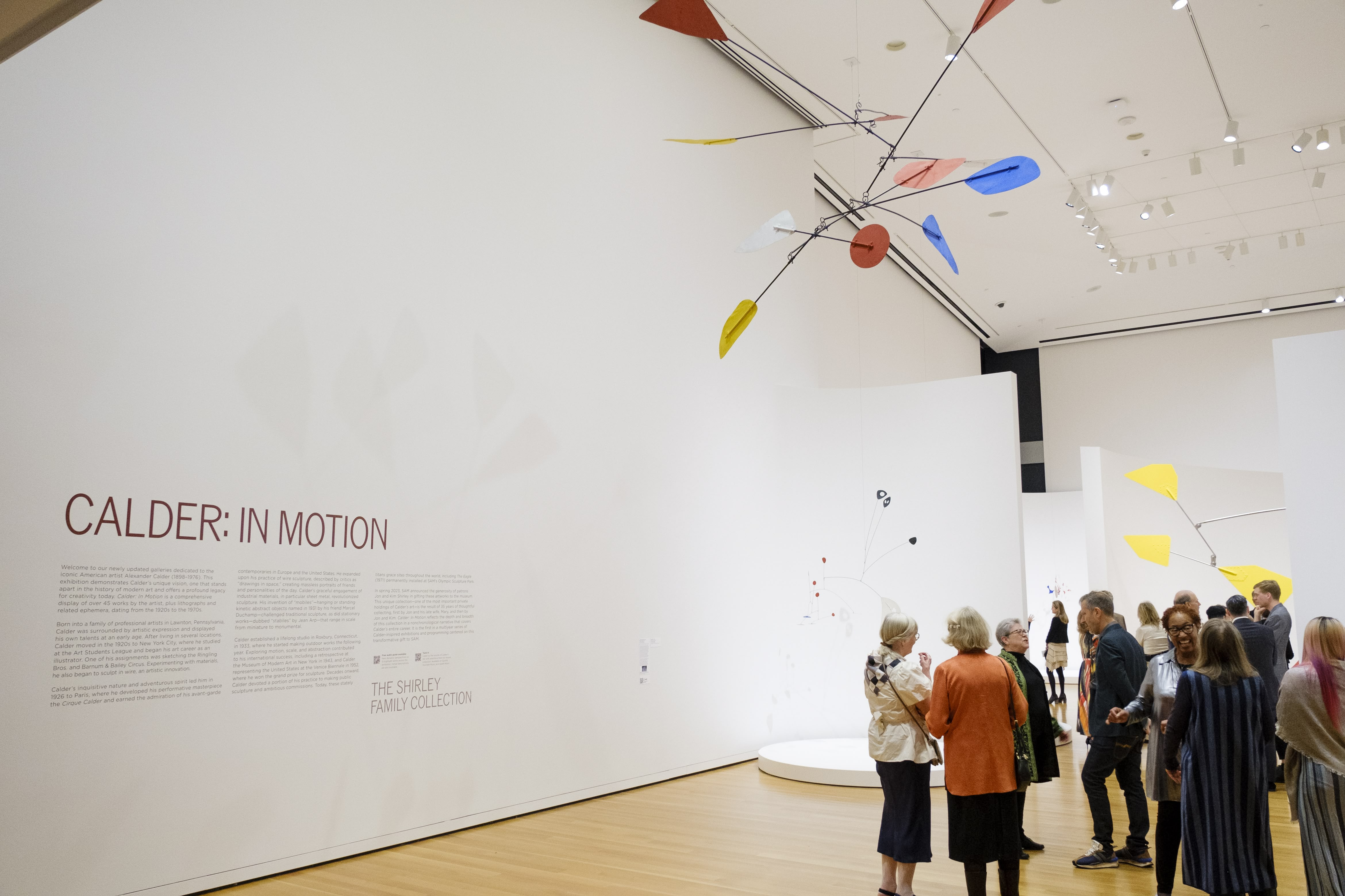 The inaugural exhibition, Calder: In Motion, The Shirley Family Collection, showcased the bequest of over 40 artworks, estimated at over $200 million. This exhibition was featured in The New York Times and the Seattle Times.